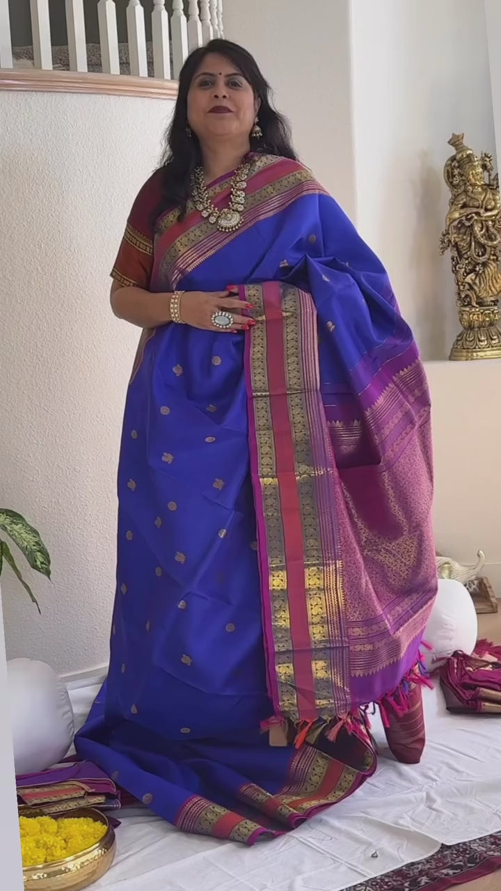 Kanjeevaram pure silk handloom saree - green purple mini checker