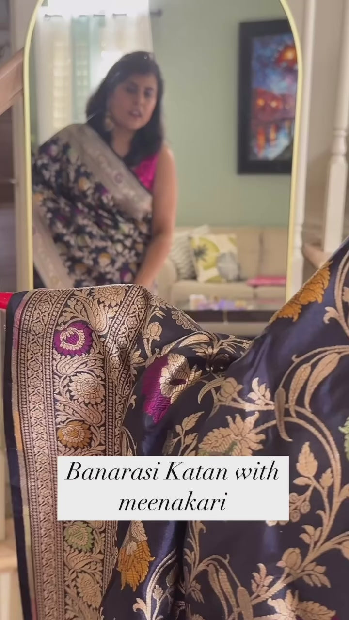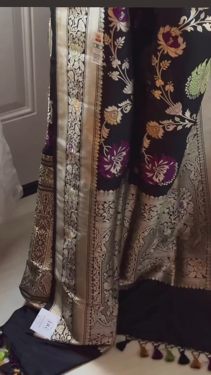Banarasi Handwoven Katan Silk meenakari weaved saree with silkmark certficate - Black