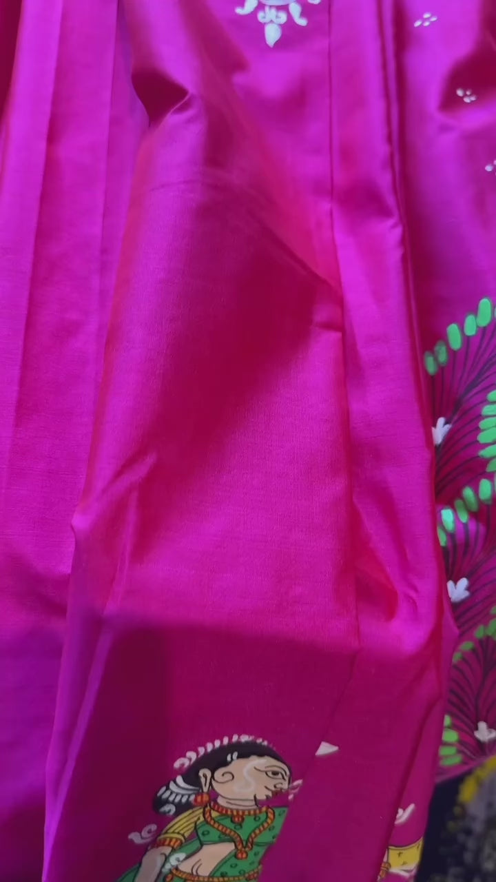 Pattachitra hand painted saree on pure silk - Nartaki Naukavihar Theme