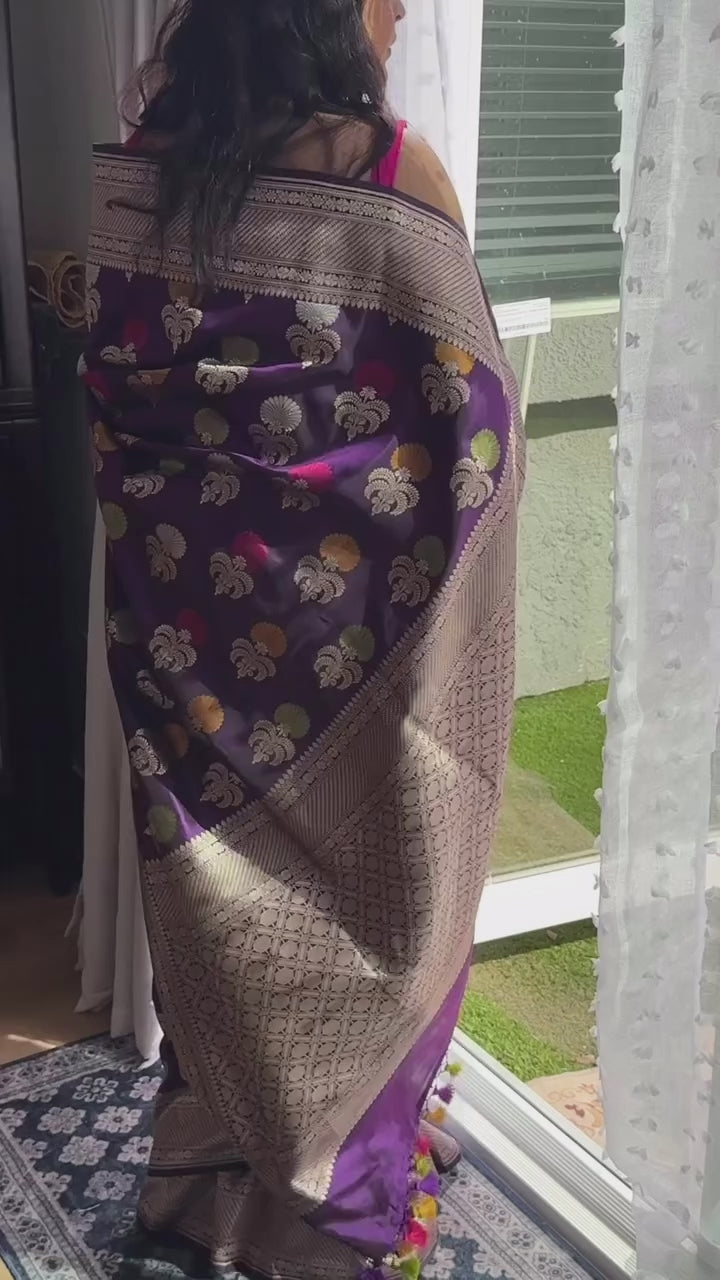Banarasi Handwoven Katan Silk meenakari weaved saree with silkmark certficate - Purple