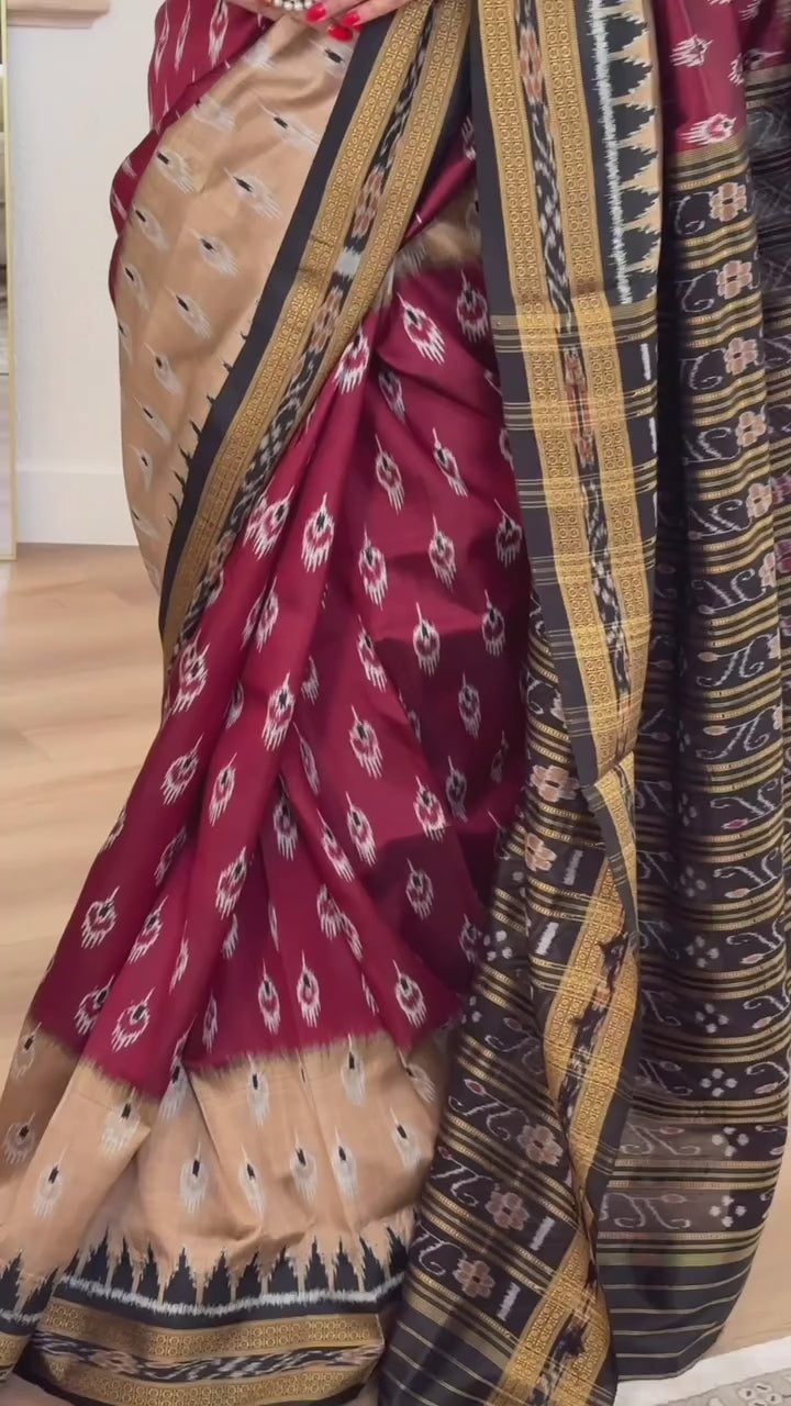 Body Chandrika Khandua Silk Odisha Handloom Saree - red beige
